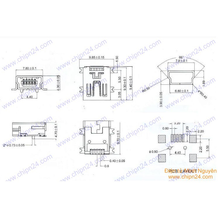 Đầu USB Mini 5P Cái DánĐầu USB Mini 5P Cái Dán