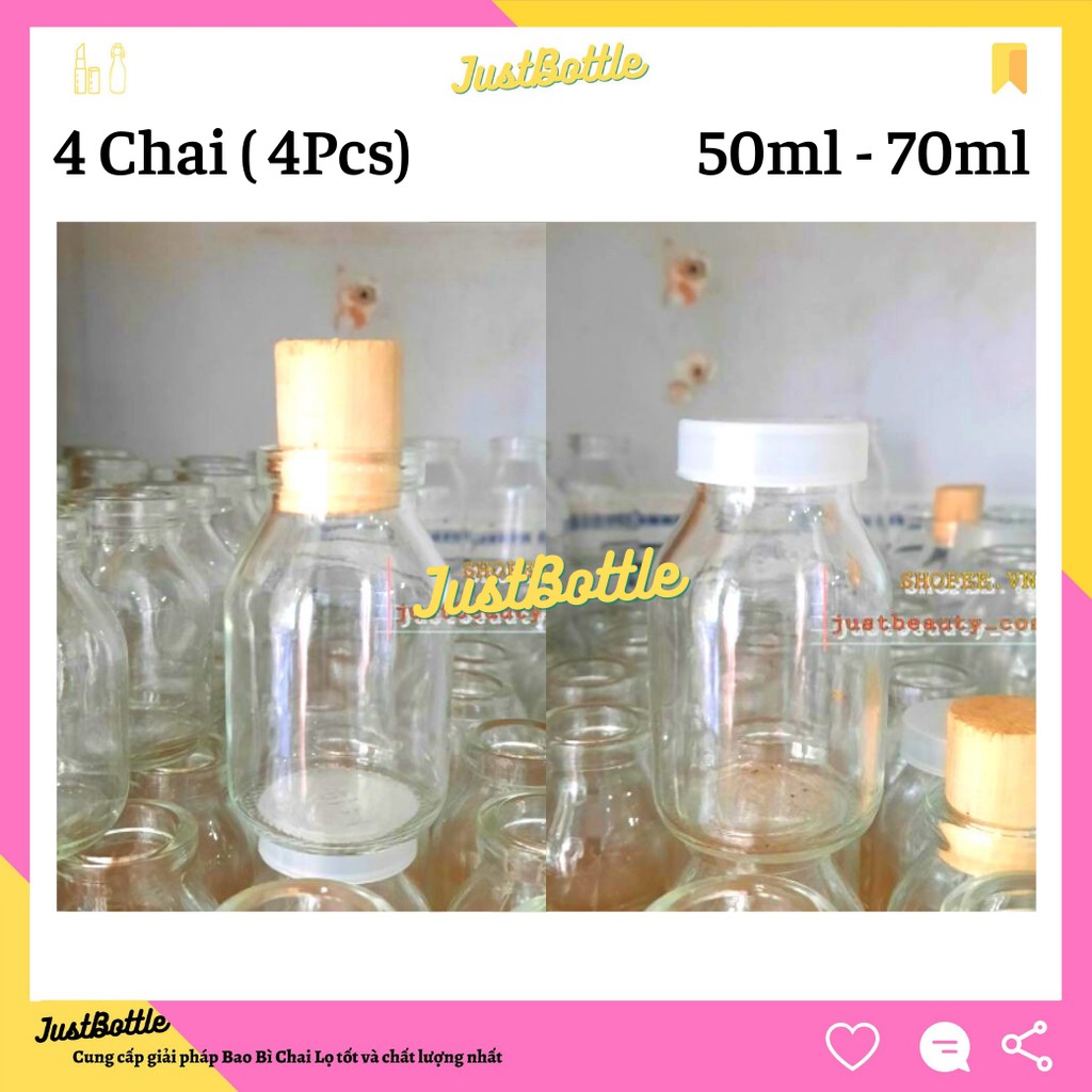 4 Chai thủy tinh nhỏ 50ml 70ml -Chai thủy tinh nắp gỗ;