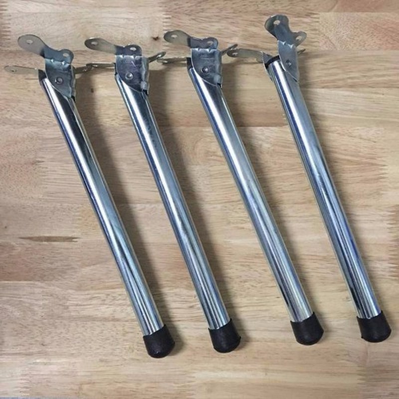 Bộ gồm 4 chân có thể thay thế những bàn bị gãy chân hỏng chân phù hợp cho tất cả mọi loại bàn gấp dễ thay thế gấp dễ dàng. Chân bàn có thể gấp gọn dễ dàng di chuyển. Chất liệu sắt mạ kẽm.