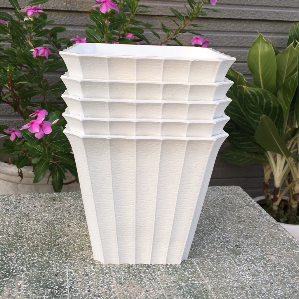 Bộ 4 chậu trồng hoa khía vuông màu trắng size 17x17x12cm