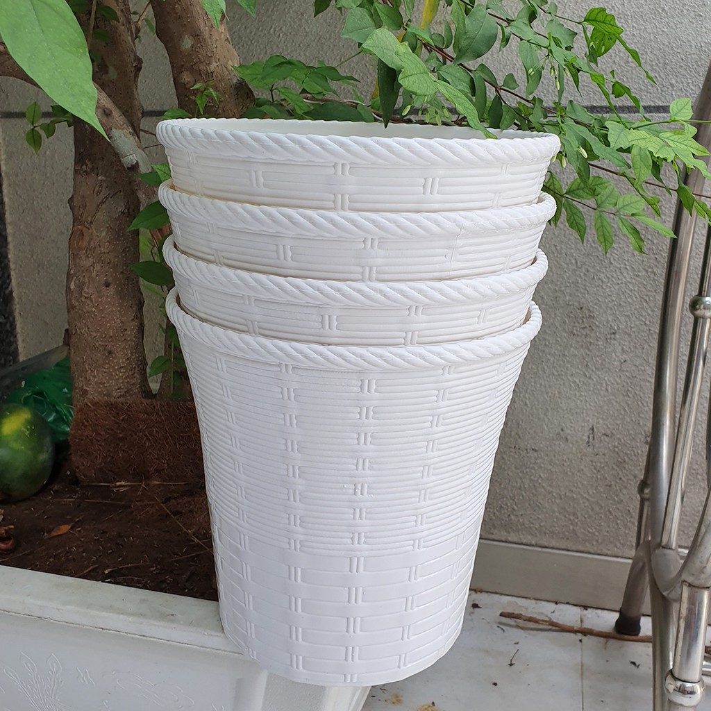 Bộ 4 chậu trồng hoa mây đan hai lớp màu trắng 26x26cm