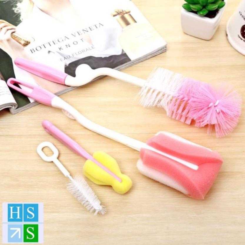 Bộ 4 chi tiết chổi cọ ly cốc, cọ bình sữa tiện lợi (Giao mầu ngẫu nhiên)
