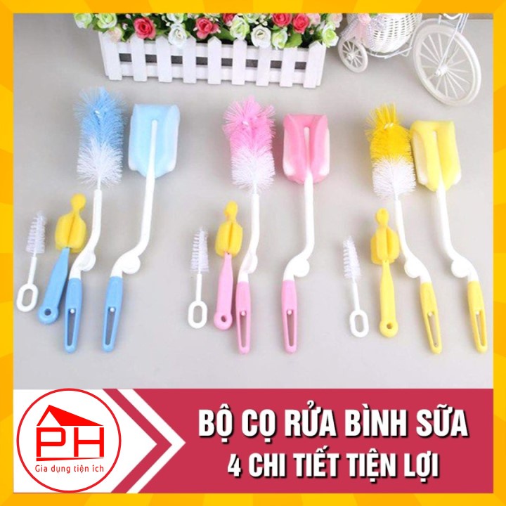 Giới thiệu Bộ 4 chi tiết chổi cọ ly cốc cọ bình sữa tiện lợi (Giao mầu ngẫu nhiên) - Gia dụng Phước Hòa