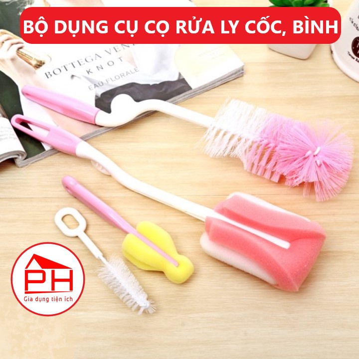 Bộ 4 chi tiết chổi cọ ly cốc cọ bình sữa tiện lợi (Giao mầu ngẫu nhiên) - Gia dụng Phước Hòa