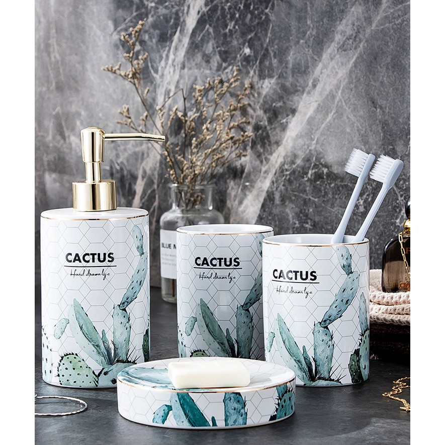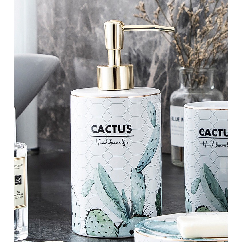 Bộ 4 chi tiết LỌ ĐỰNG SỮA TẮM GEL XÀ PHONG NHÀ TẮM PHONG CÁCH SANG TRỌNG CACTUS 4PCS