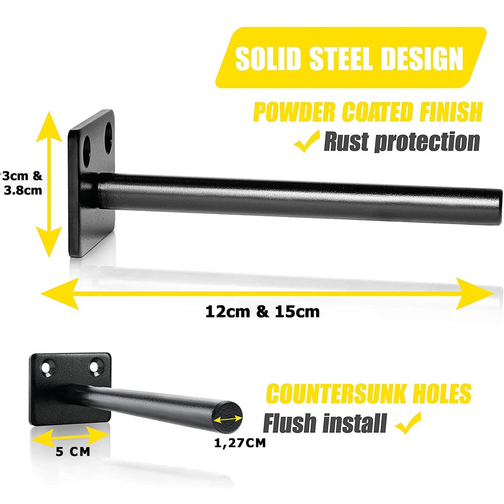 Bộ 4 chốt âm kệ treo tường, pát âm đỡ kệ trang trí bằng thép đặc 15cm và 12cm, kèm phụ kiện vít tắc kê