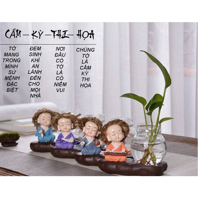 Bộ 4 Chú Tiểu Cầm Kỳ Thi Họa Cao Cấp