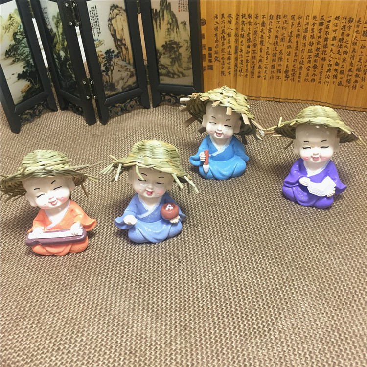 4 chú tiểu đội nón Cầm_kỳ_Thi_Họa_ Vật phẩm phong thủy trang trí tiểu cảnh _SinSoShop_