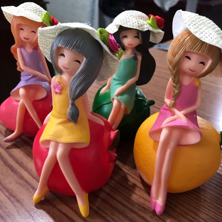 Nhà cửa & Đời sống > Dụng cụ nhà bếp > Dụng cụ nướng & trang trí bánh || Bộ 4 cô gái hoa quả tran trí bánh -cao 13Cm, topper cakeCòn hàng