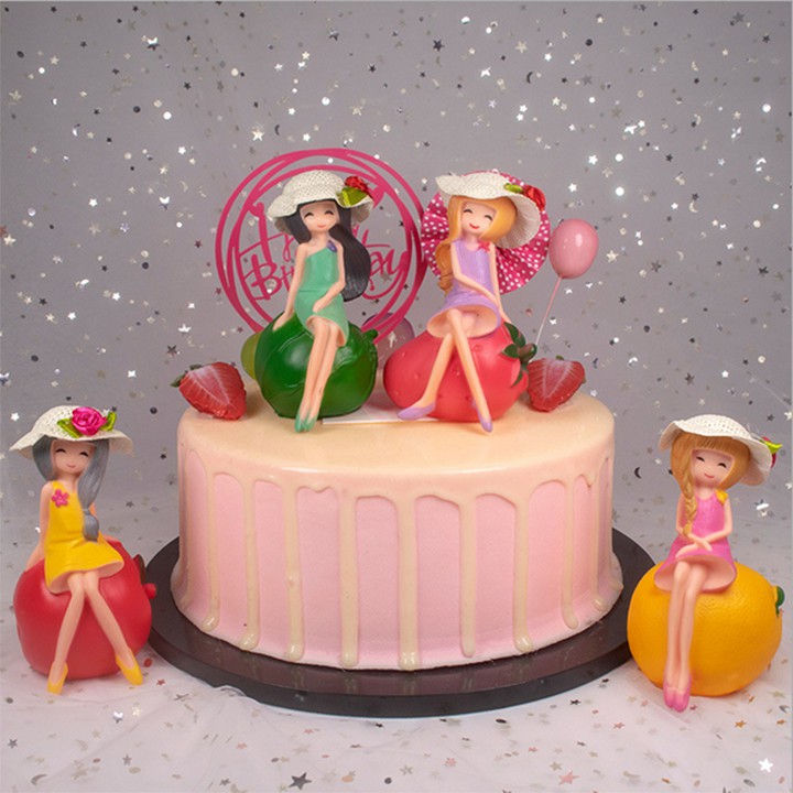Bộ 4 cô gái hoa quả tran trí bánh -cao 13Cm, topper cake- Dùng để trang trí bánh sinh nhật, bánh thạch 3D ... đồ chơi cho bé