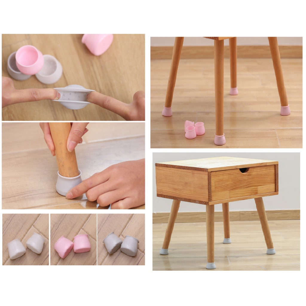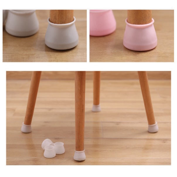 Màu sắc: trắng, xám, hồng. Bộ gồm 4 miếng bọc chân bàn ghế