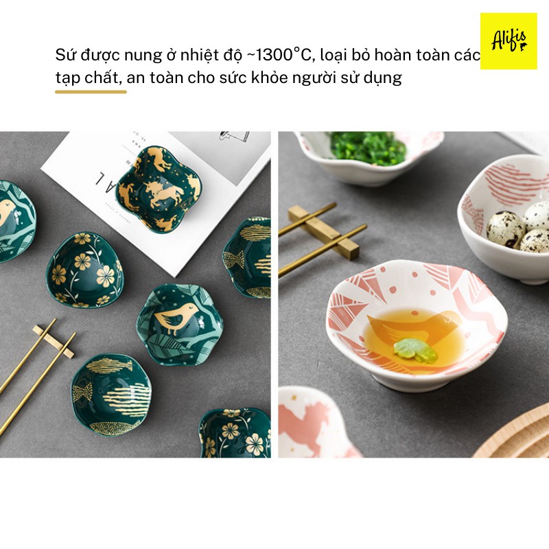 + Đĩa đựng gia vị chất liệu gốm tráng men tuyết cao cấp kết hợp với hoa văn bắt mắt, tự nhiên và men bóng mịn, không bị phai màu, đảm bảo an toàn cho sức khoẻ
