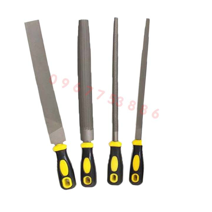 Bộ dũa gồm: 01 dũa tròn, 01 dũa dẹt vuông, 01 dũa nửa tròn và 01 dũa tam giác.