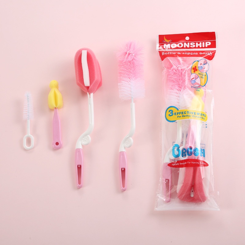 Bộ 4 Dụng Cụ Cọ Rửa Ly, Bình Sữa Đa Năng MOONSHIP