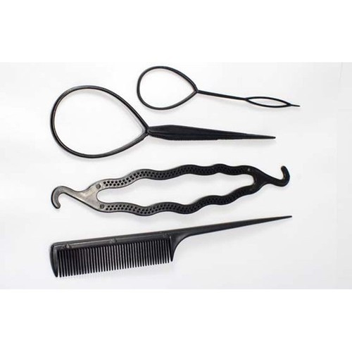 Combo dụng cụ làm tóc 4 món bao gồm: 2 dụng cụ búi tỏi lớn và nhỏ, 1 lược, 1 kẹp gợn sóng. - Thiết kế nhỏ gọn, dễ sử dụng, cho bạn có thể dễ dàng tạo cho mình những kiểu tóc mới phù hợp nhất khi đi tiệc hay dạo phố. - Chất liệu nhựa, bông xốp cao cấp, không làm đau hay gãy rụng tóc. - Bộ sản phẩm là món quà ý nghĩa dành tặng bạn gái.thanks!