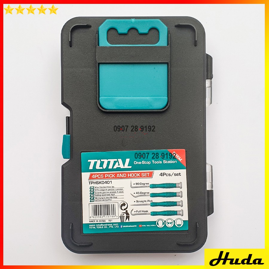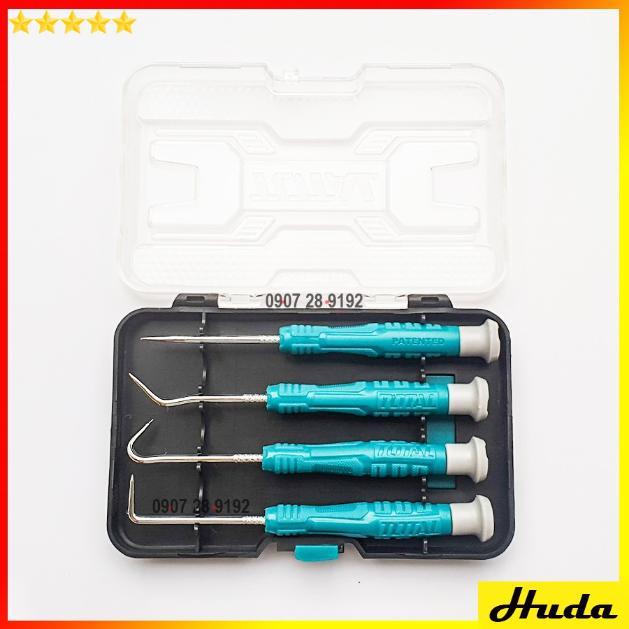 -Bộ 4 dụng cụ sửa điện thoại với tay cầm TOTAL thiết kế mới gồm: 1 cái full, 1 cái 45 độ, 1 cái 90 độ, 1 cái chọn thẳng Đóng gói bằng hộp nhựa.