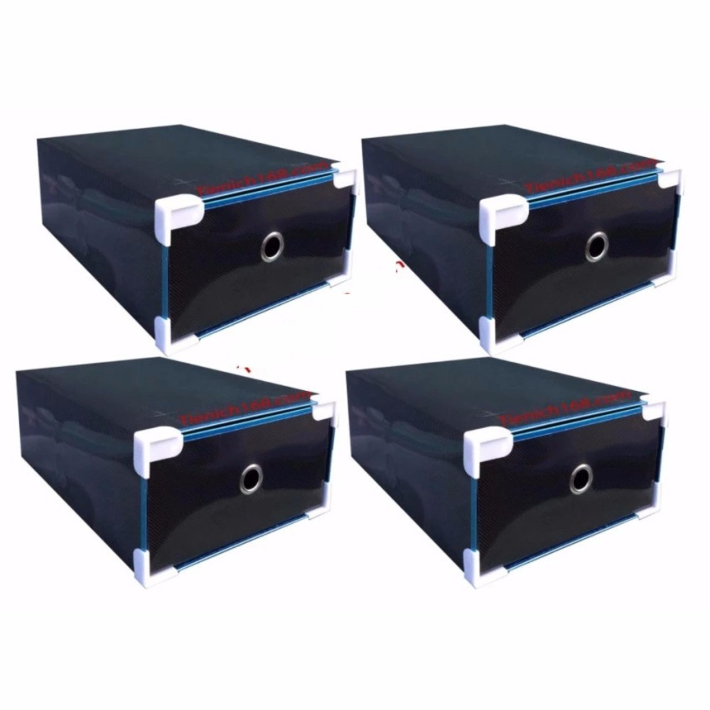 Bộ 4 hộp đựng giầy có ngăn kéo viền kim loại Đen TI750