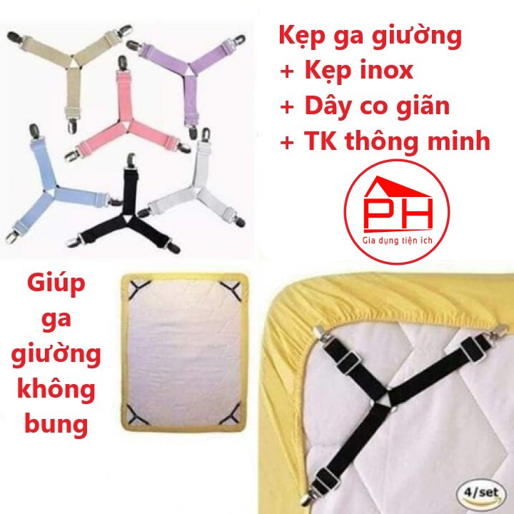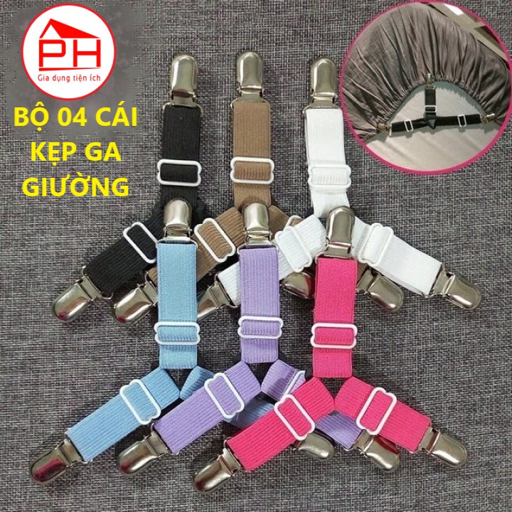 Nhà cửa & Đời sống > Chăn ga gối nệm > Khác || Bộ 4 Kẹp ga trải giường chống xê dịch cố định và giữ phẳng drap ga phủ giường (Giao mầu ngẫu nhiên) - Gia dụng Phước HòaCòn hàng