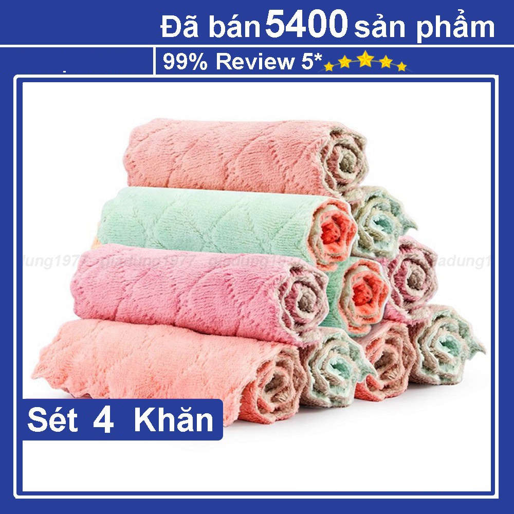 Nhà cửa & Đời sống > Dụng cụ chăm sóc nhà cửa > Khăn vệ sinh || 4 Khăn lau bếp/ bát đĩa/ cốc / chén đa năng thấm nước chống dính dầu mỡ hai mặt( 4cái)Còn hàng