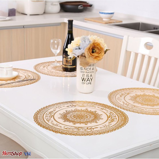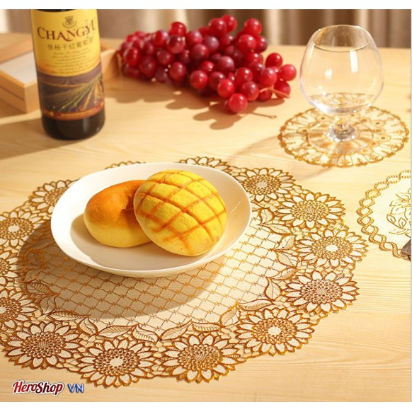 Sản phầm gồm: 4 Khăn Trải Bàn Nhũ Vàng Sang Trọng đường kính 30 cm.