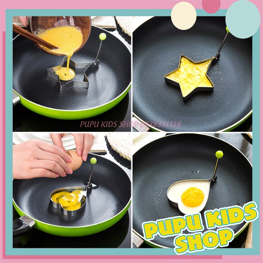Giới thiệu Bộ 4 Khuôn chiên trứng, làm bánh inox tạo hình trái tim, ngôi sao, bông hoa