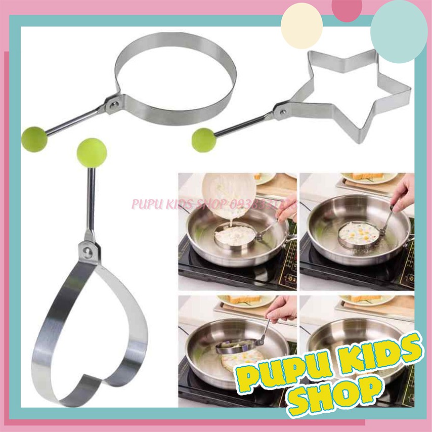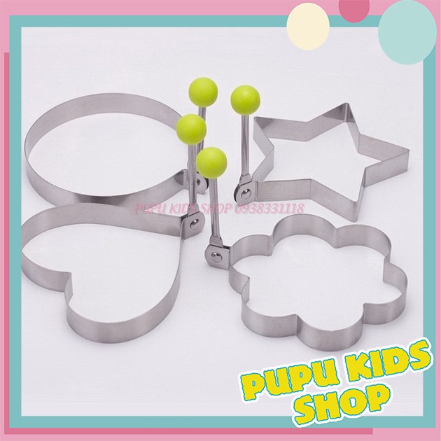 Bộ 4 Khuôn chiên trứng, làm bánh inox tạo hình trái tim, ngôi sao, bông hoa