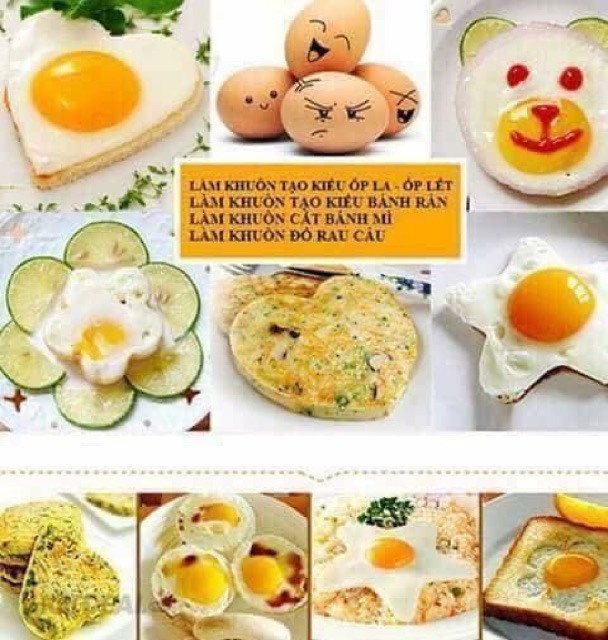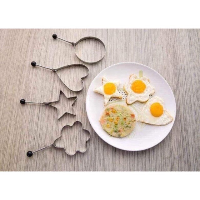 🌸Với bộ dụng cụ này, món trứng ốp của bạn sẽ tuyệt đẹp. Có hình trái tim, hình tròn, hình bông hoa, hình ngôi sao. Sử dụng rất đơn giản, bạn chỉ cần cho khuôn lên chảo, cho dầu vào, rồi đập trứng vô là xong. Cùng 1 chiếc chảo, bạn có thể ốp được 4 quả trứng cùng lúc. Thật tiện phải ko nào?!