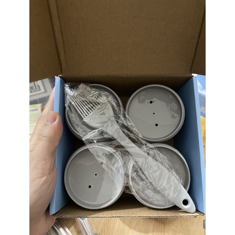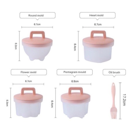 Bộ 4 Khuôn Hấp Trứng, Làm Bánh Kèm Cọ Phết