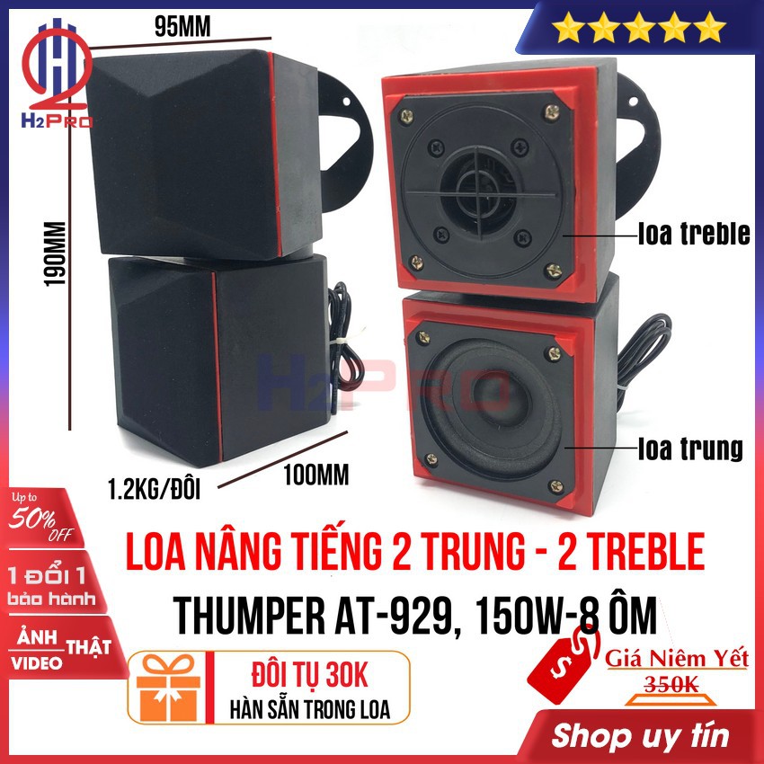 Thiết Bị Âm Thanh > Dàn âm thanh > Loa || Bộ 4 loa 2 trung-2 treble Thumper AT-929 H2Pro cao cấp-150W-8 ôm-lời sáng-treble đanh, loa nâng tiếng treble-mid giá rẻCòn hàng