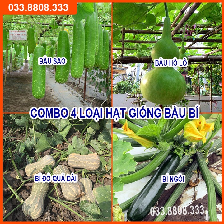 4 LOẠI HẠT GIỐNG BẦU BÍ ( BÍ HỒ LÔ - BẦU SAO - BÍ HẠT ĐẬU - BÍ NGỒI XANH)