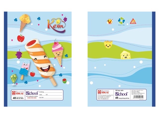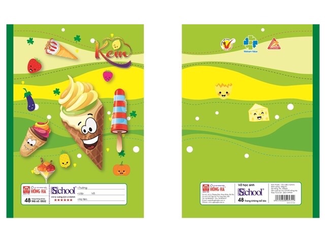Vở School Kem 4 ôly vuông 48 trang không kể bìa Hồng Hà 0532Mã số 0532