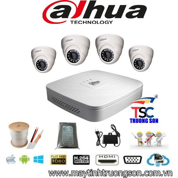 Cameras & Flycam > Camera giám sát > Camera giám sát kết nối internet || Bộ 4 mắt camera dahua 2.0 (5104hs)Còn hàng