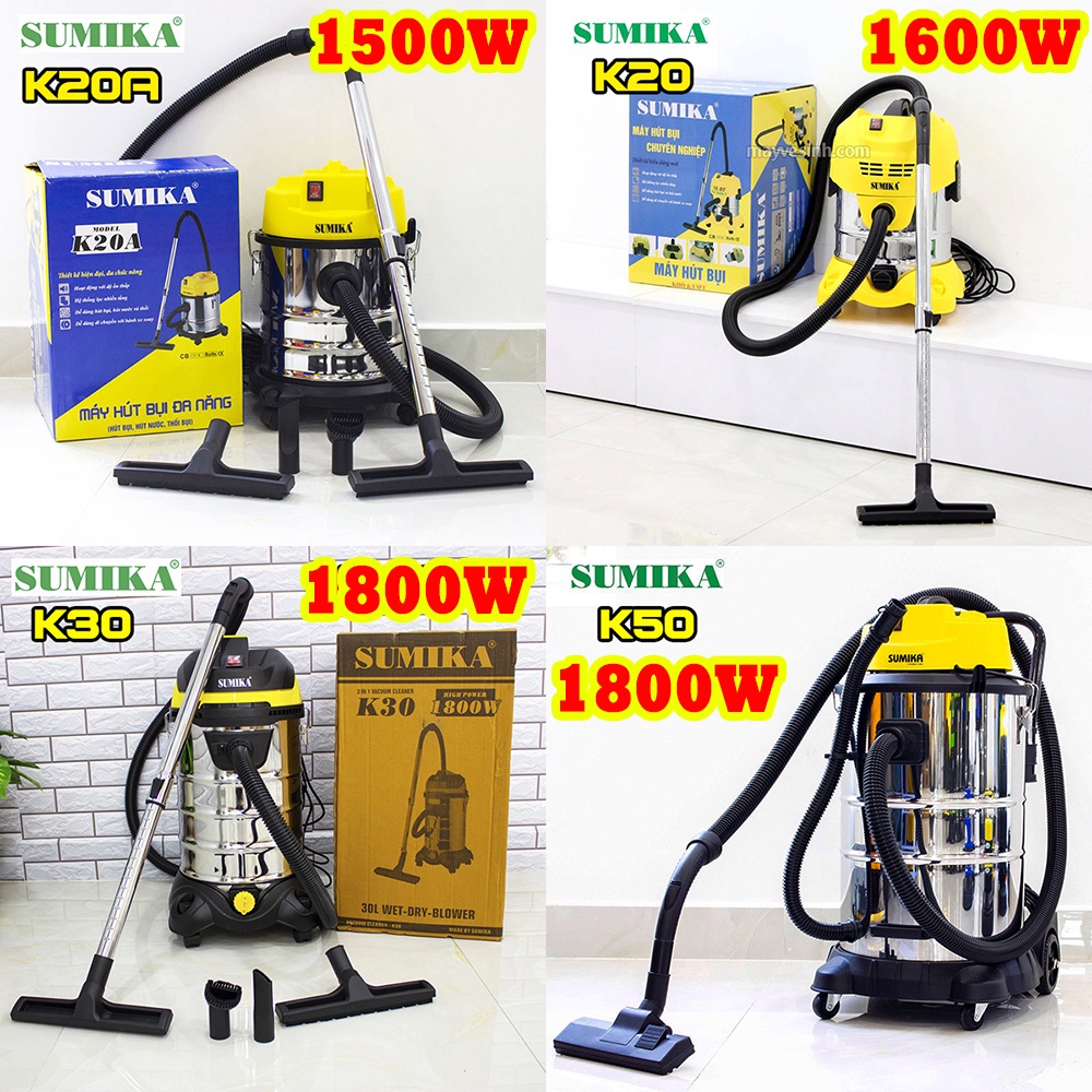 Thiết Bị Điện Gia Dụng > Thiết bị điện gia dụng nhỏ > Máy hút bụi & Thiết bị làm sạch sàn || 4 Mẫu Máy hút bụi công nghiệp Sumika K20,K20A,K30,K50 - 1500W-1600W-1800W (Hút khô và hút nước thổi) bảo hành 1 nămCòn hàng