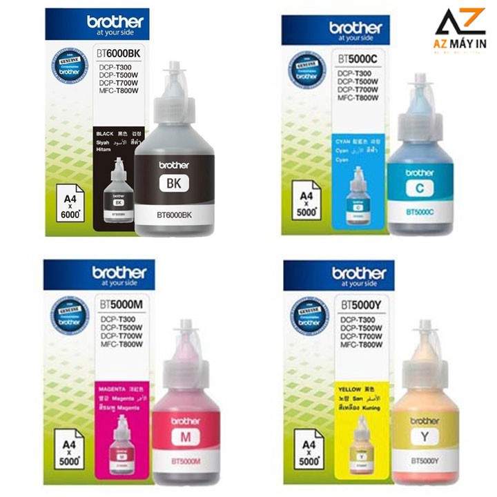 Bộ 4 màu mực máy in Brother DCP T300, T500W, T700W, MFC T800W | Mực Brother BT6000BK, BT5000C, 5000Y, 5000M chính hãng