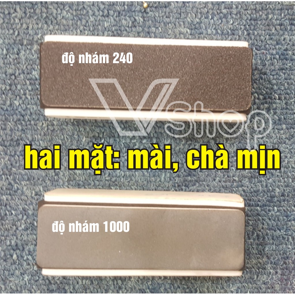 Sản phẩm chuyên dùng cho việc mài thô, mài mịn, đánh bóng hoàn thiện sản phẩm.Được cấu tạo bởi 1 lõi, chất liệu bằng mút. 4 mặt được dán 4 miếng xốp, trong đó có 2 miếng xốp được dán giấy nhám có độ mịn khác nhau. Miếng nhám thô, độ nhám 240. Miếng nhám mịn, độ nhám 1000. 2 mặt nhám dùng để mài và hai mặt xốp dùng để đánh bóng