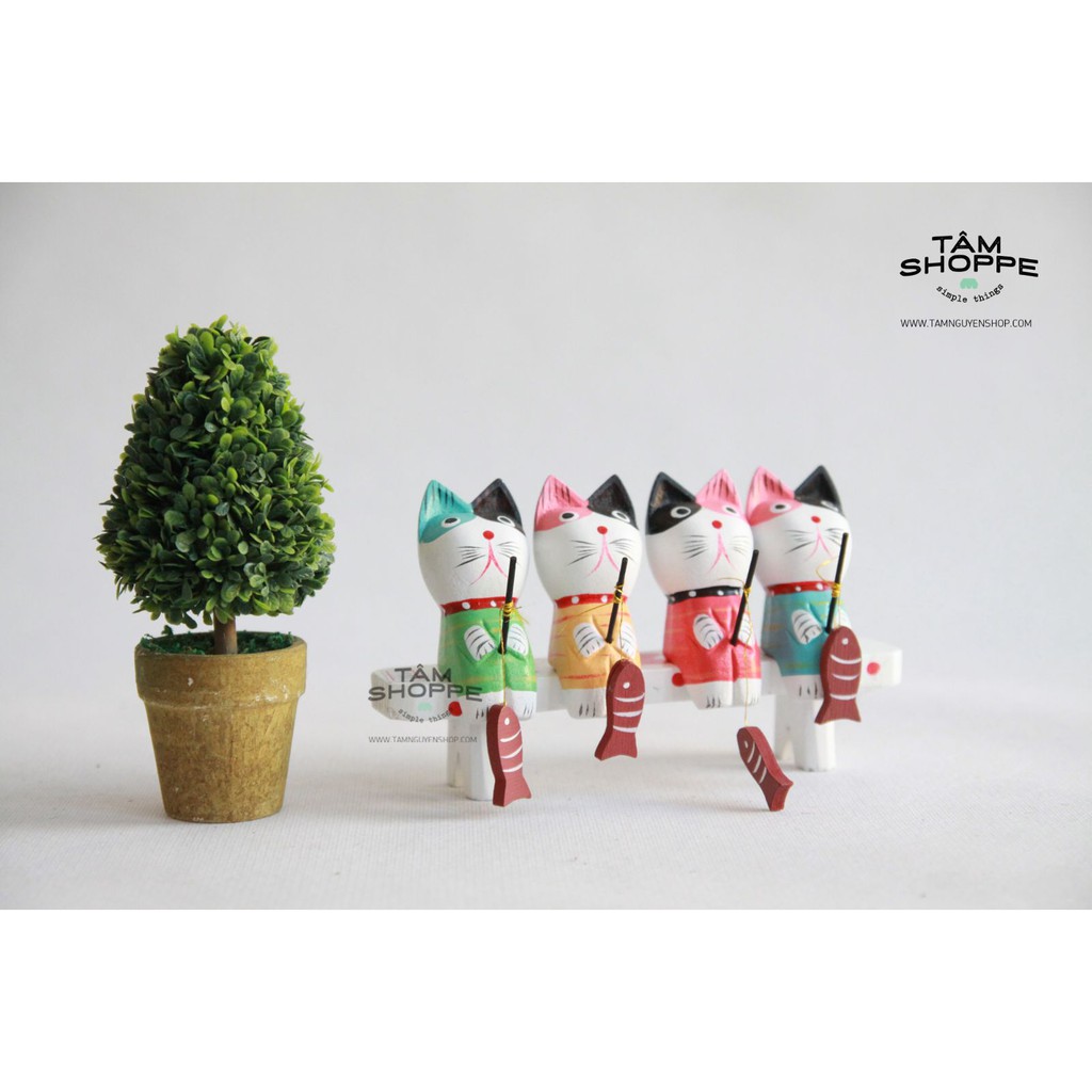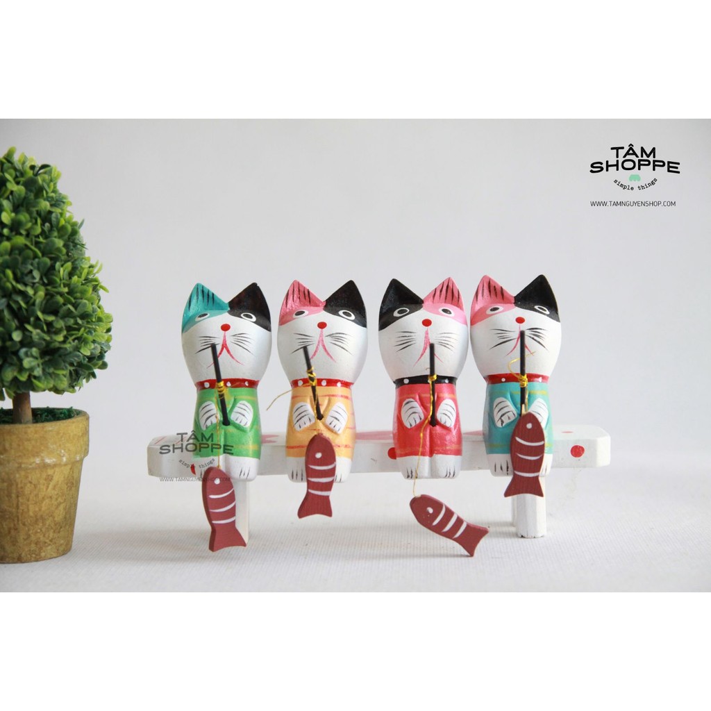 Nhà cửa & Đời sống > Trang trí nhà cửa > Khác || Bộ 4 mèo gỗ câu cá Zakka Nhật BảnCòn hàng