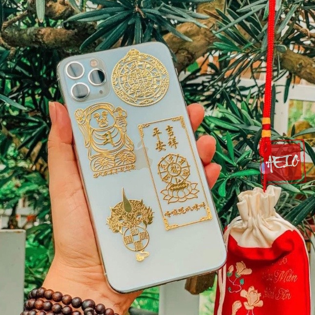 Bộ 4 Miếng Dán Linh Phù Tài Lộc Hộ Thân ☯️ Linh Phù Dán Điện Thoại Phong Thủy