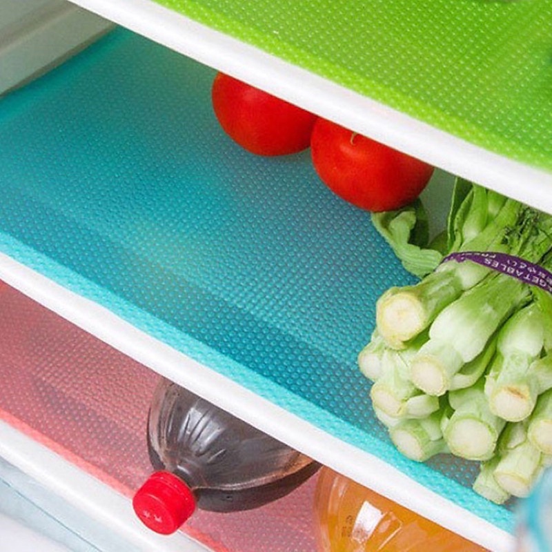 Bộ 4 miếng lót chống khuẩn ngăn tủ lạnh đa năng (45 x 30 cm) Chất liệu nhựa cao cấp chống trơn trượt