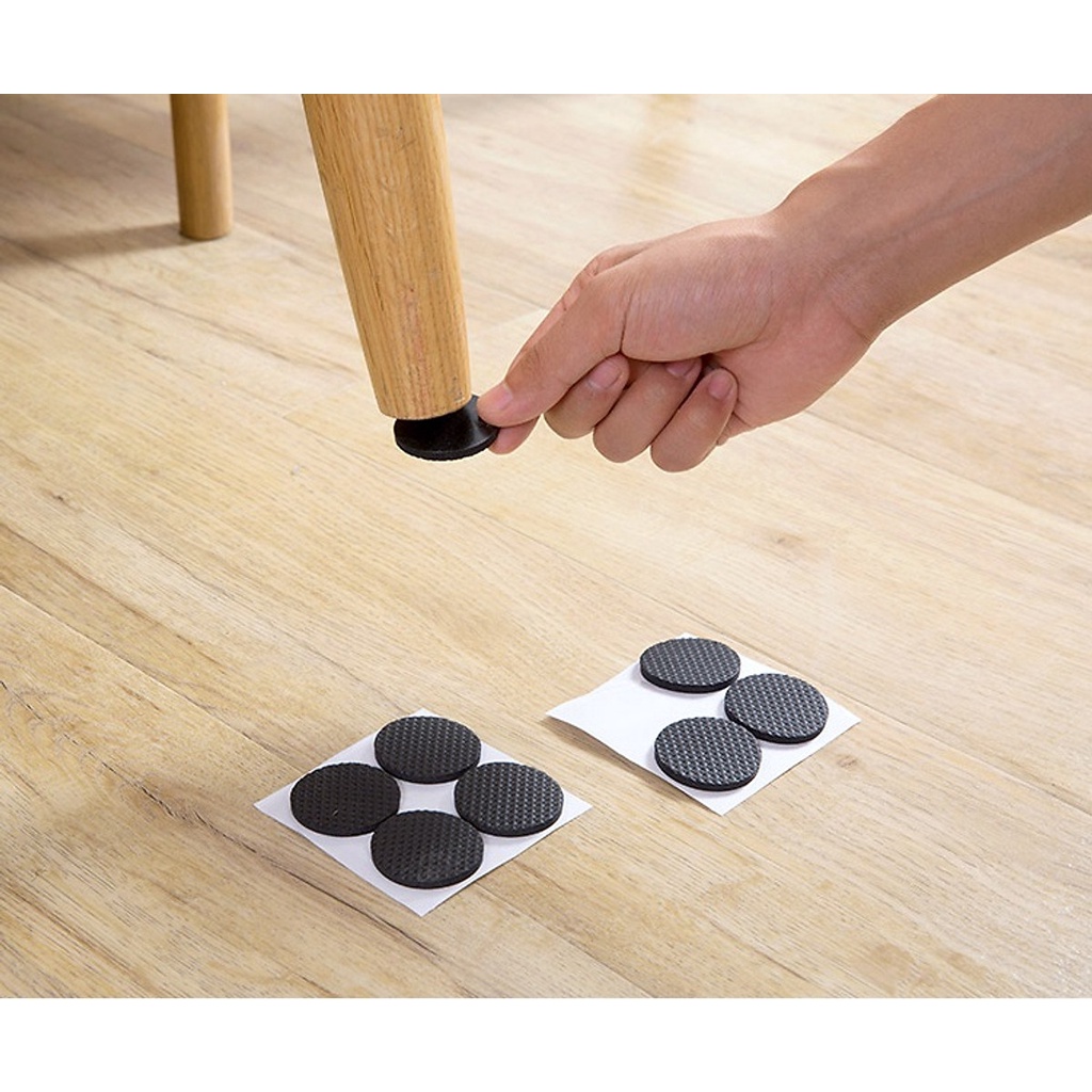 Sử dụng đơn giản chỉ cần bóc lớp giấy phía sau miếng lót và dán sản phẩm vào chân bàn ghế bạn muốn.