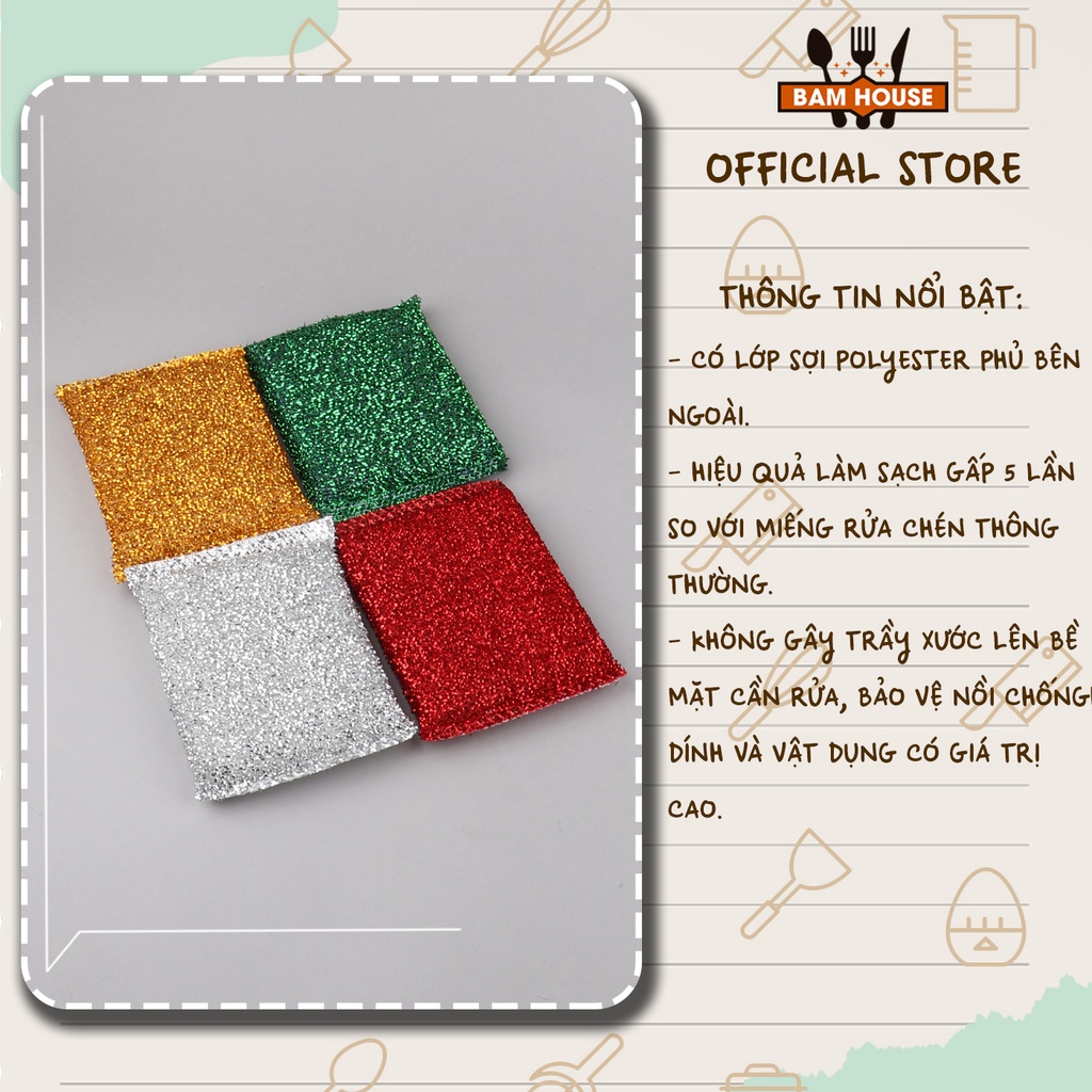Nhà cửa & Đời sống > Dụng cụ chăm sóc nhà cửa > Miếng bọt biển, miếng chà vệ sinh || Bộ 4 miếng rửa chén kim tuyến Bam House đa năng siêu sạch cao cấp BRH01 – Fuki24Còn hàng