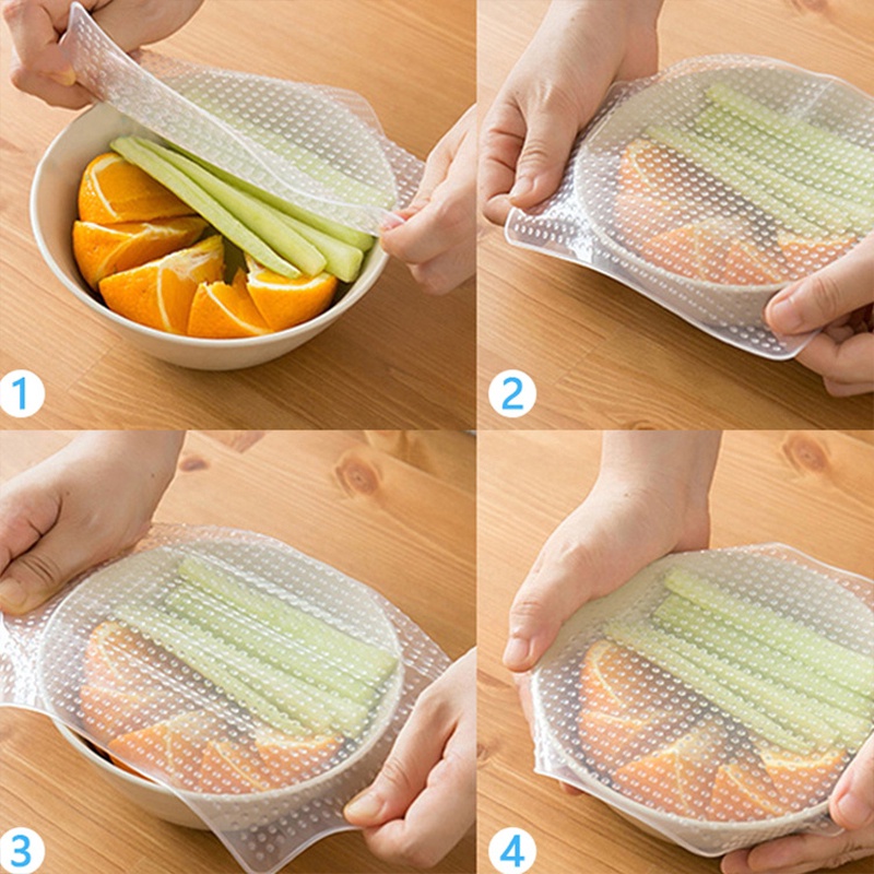 Bộ 4 Miếng Silicone Bọc Thực Phẩm Tái Sử Dụng Được