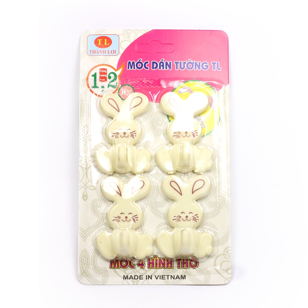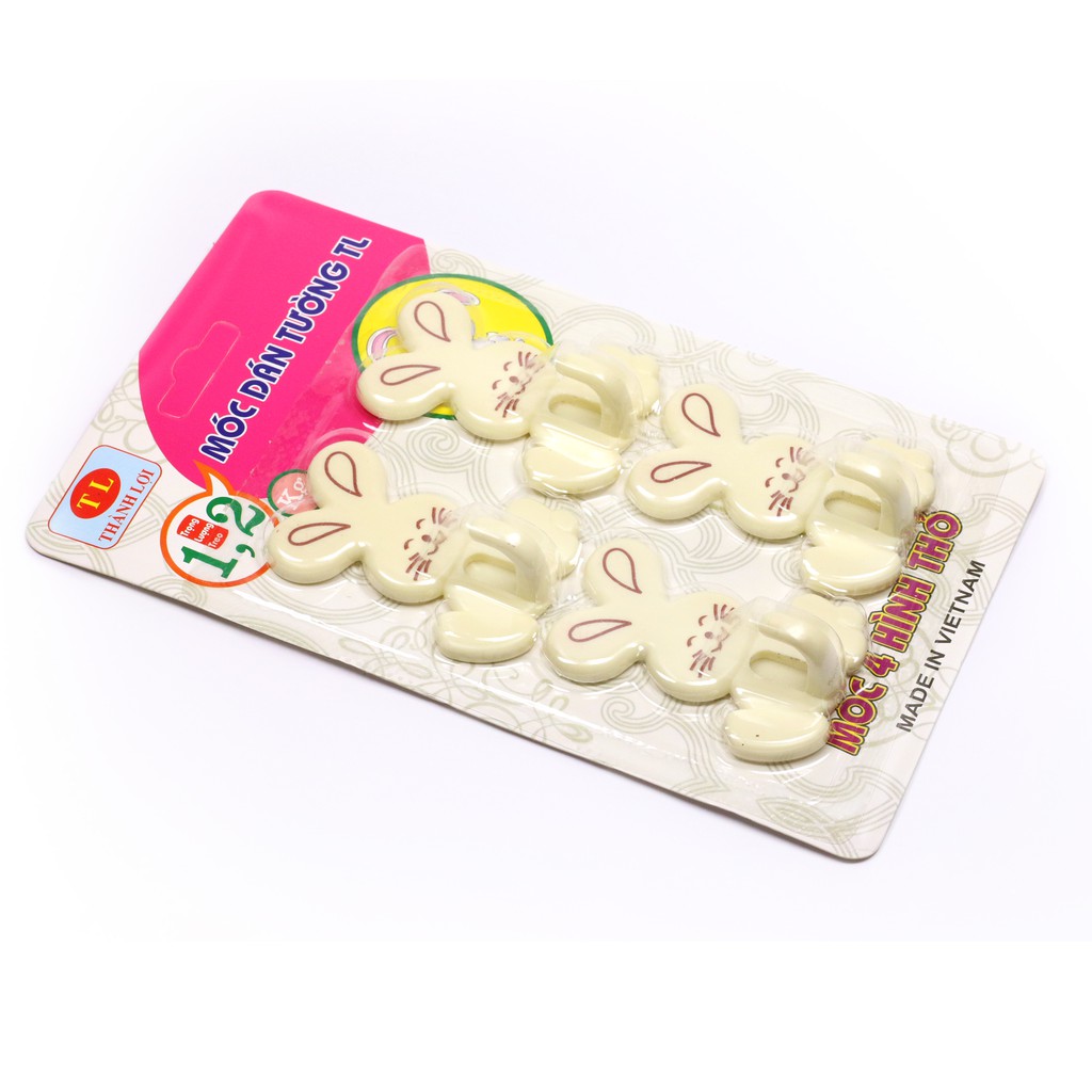 Bộ 4 móc nhựa treo đồ dán dính tường siêu chắc đẹp hình thỏ