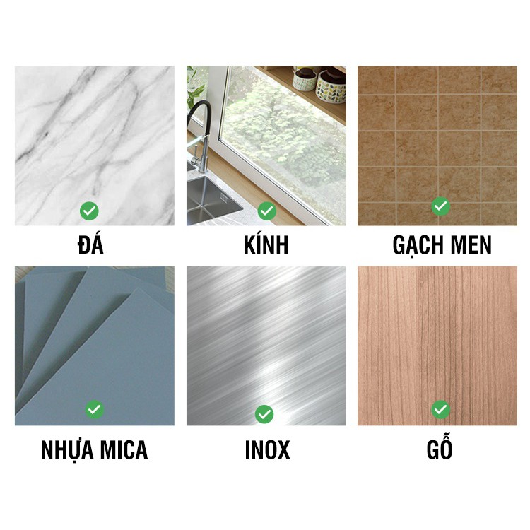 🌻 Độ bám dính chắc, phù hợp với mọi bề mặt: đá, kính, nhựa mica, gạch men, inox, gỗ.