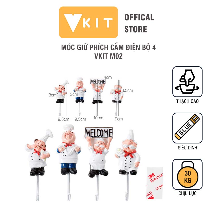 Tên sản phẩm: Bộ 4 móc ông đầu bếp dễ thương chất liệu thép chống han gỉ- Cực kì tiện lợi VKIT M02Chất liệu : Thạch cao