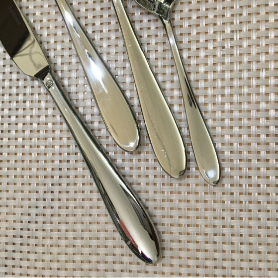 bộ 4 món dao muỗng nĩa cán tròn cao cấp inox 304 (chuẩn 18/10), bộ dao thìa nĩa đẹp, hình giọt nước, inox dày 9mm