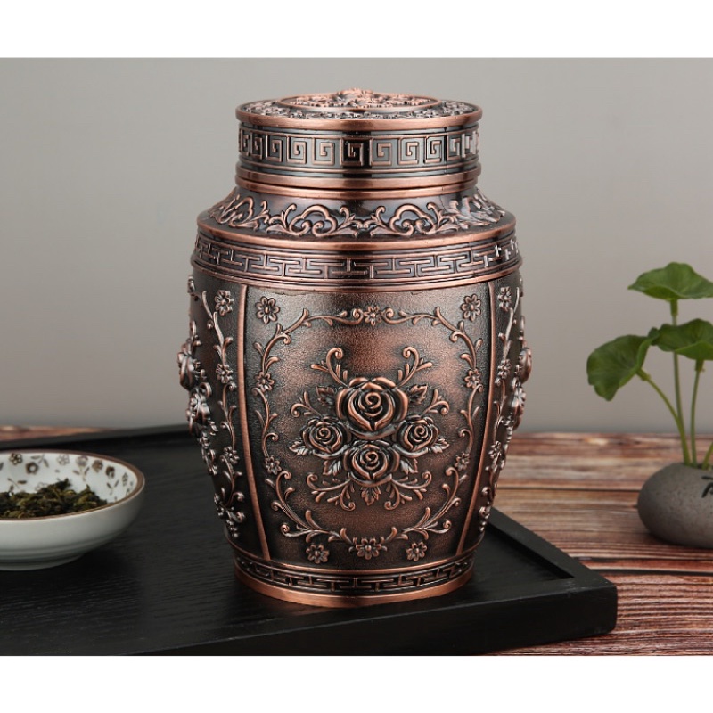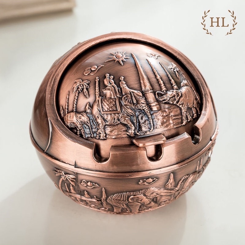 Bộ 4 món Đồng hoàng gia | Hộp đựng giấy, Hộp đựng chè, Lọ tăm, Gạt tàn hợp kim hoạ tiết tân cổ điển