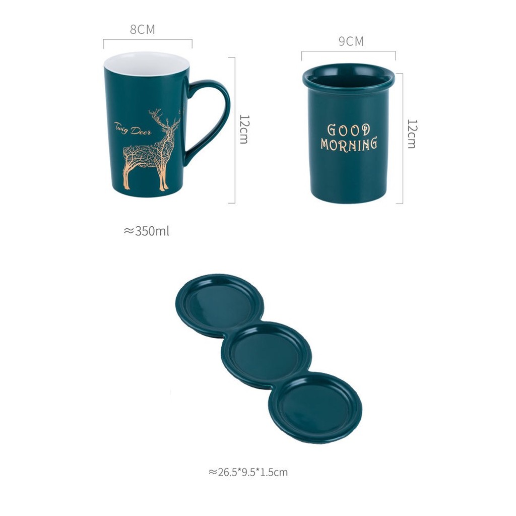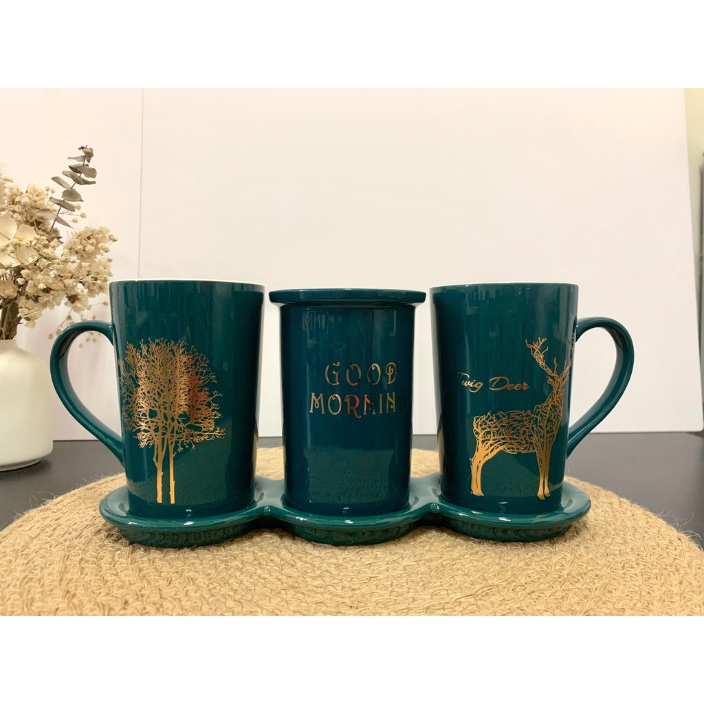 - Sản phẩm bao gồm: 2 cốc có quai, 1 cốc đựng bàn chải và 1 khay sứ ạ.
