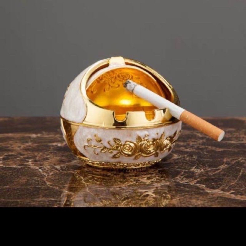 Bộ 4 món Vàng hoàng gia,đựng giấy,hộp đựng chè,Lọ tăm, Gạt tàn hợp kim hoạ tiết tân cổ điển