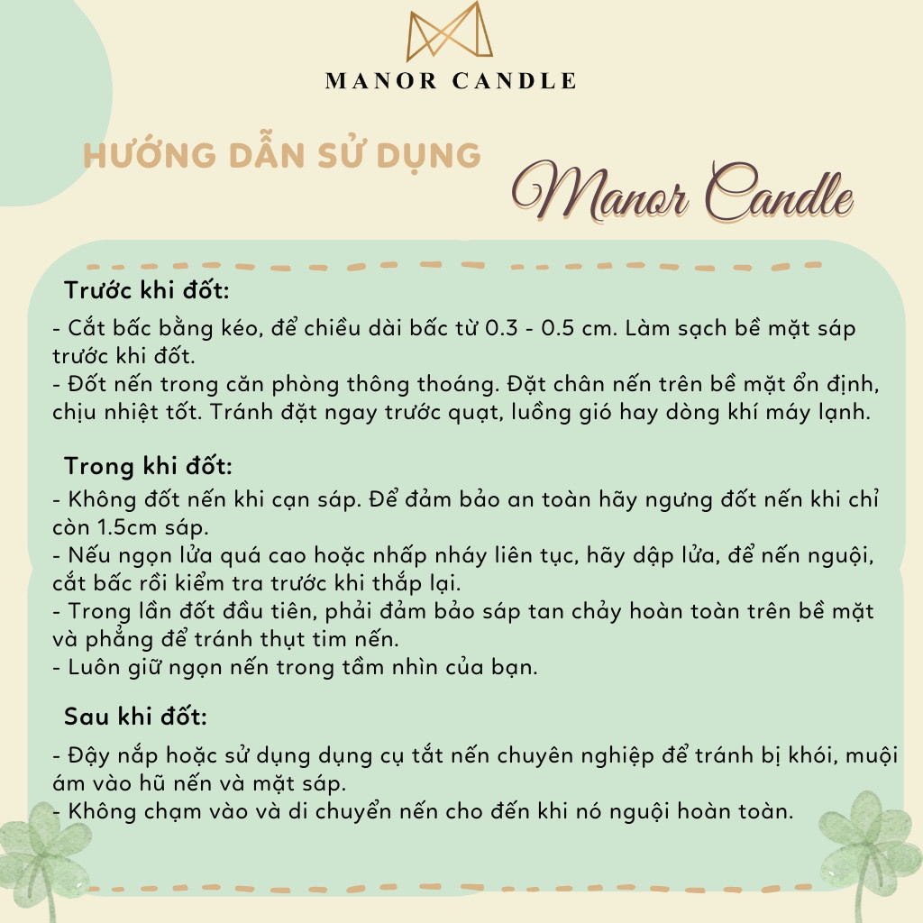 MÔ TẢ SẢN PHẨMNến thơm phòng, tinh dầu cao cấp nhập khẩu Manor Candle, không khói an toàn, dùng trang trí nhà cửa và quà tặng.