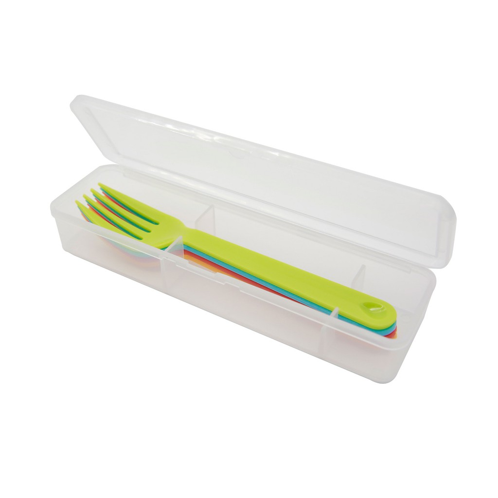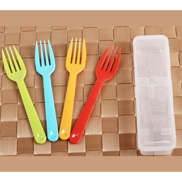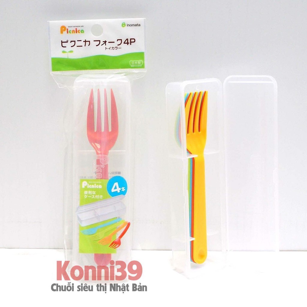 Bộ 4 Nĩa, dĩa ăn Kèm Hộp INOMATA Nhật Bản nhựa PP màu sắc An toàn cho sức khỏe(Sản phầm gồm 4 Nĩa ăn và Hộp đựng xinh xắn)